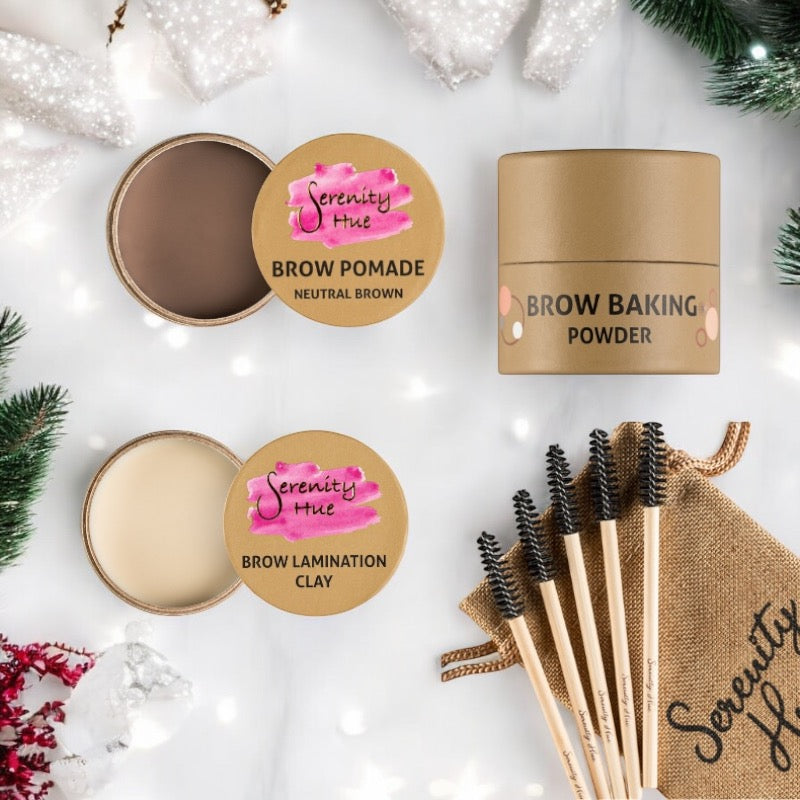 Create your best brows yet with our Ultimate Holiday Brow Trio, featuring Brow Baking Powder, Brow Pomade, and Brow Lamination Clay for the perfect blend of volume, definition, and long-lasting hold. This trio is designed to give you beautifully sculpted brows that are full, bold, and ready for every holiday moment.
